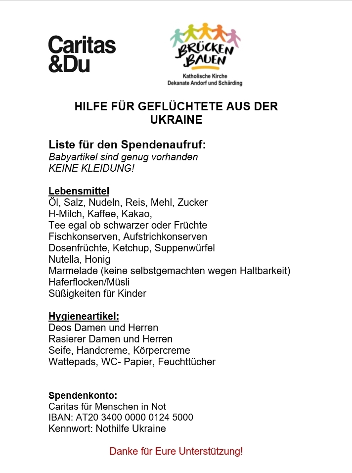 „Wir wissen alle um die Katastrophe in der Ukraine. Auch nach Österreich sind inzwischen Zehntausende Menschen geflohen. Unsere Solidarität ist gefordert. ...